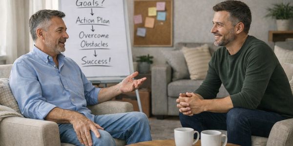 Sometimes a man just needs someone to talk to. Not a therapist, but someone to listen and provide feedback, and help him design a new way forward.